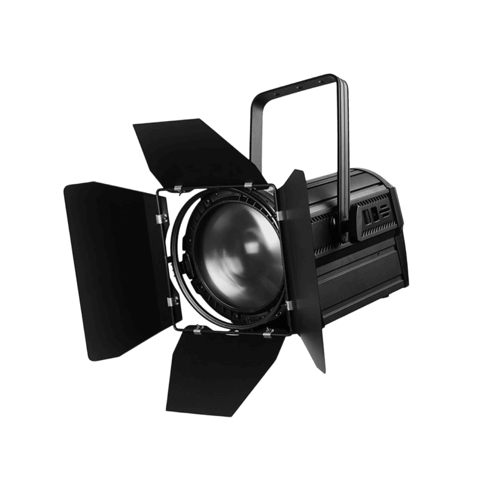 The LED Studio Fresnel Spotlight is a professional lighting device specifically designed for film and television studio stages, web series sets, and high-definition live streaming rooms. It features a high-power COB LED combined with a premium Fresnel lens optical system, delivering ultra-high color rendering (Ra ≥ 95, R9 ≥ 90, TLCI ≥ 96), uniform and soft light output with smooth edge transitions. Free from UV/IR harmful radiation, it protects actors’ skin and props. The spotlight offers 0–100% 16-bit linear flicker-free dimming and supports DMX512/RDM remote control. Coupled with four-leaf barn doors, it enables precise shaping of character outlines and scene layering.